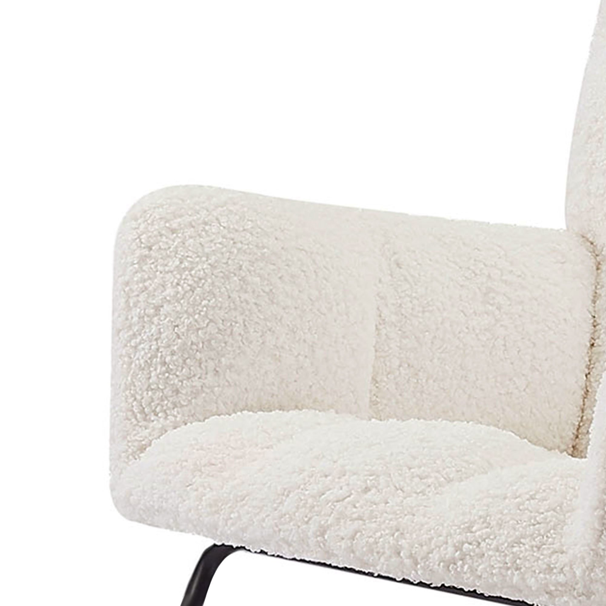 Leisure Sofa Glider Chair, Comfy Upholstered Lounge Chair with High Backrest, for Nursing Baby, ReadERGONOMIC DESIGN - The tilt angle of the backrest of this rocking chair is designed with an ergonomic curve, and the high backrest provides perfect support for the back. Including the armrests of the chair, providing great comfort. Lying on the rocking chair and shaking, we can feel a lot of relaxation.EASY ASSMBLE - Assembling this rocking arm chair is not difficult. This rocking chair can be easily assembled by following the clear instructions.SUPERB QUALITY - The seats are made of soft and skin boucle, which is durable and not easily deformed.STURDY and STABLE - The nursery rocking chair is made of a mix of metal and solid wood, which provides reliable and stable support. During nap time, gently shake the baby to fall asleep.