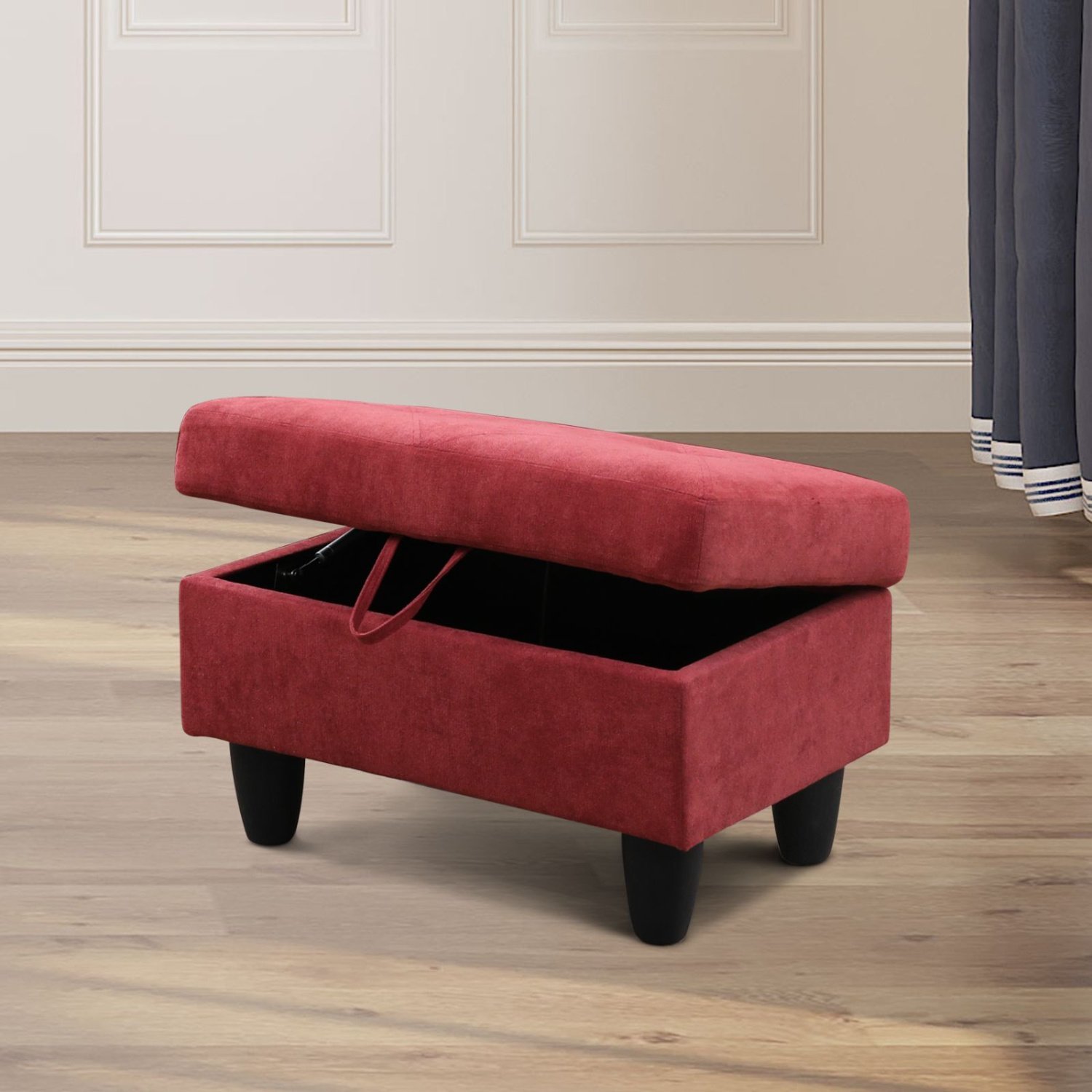 With stitching details for added interest and tapered wood legs , this large storage ottoman offers a stylish storage and seating solution for years to come.