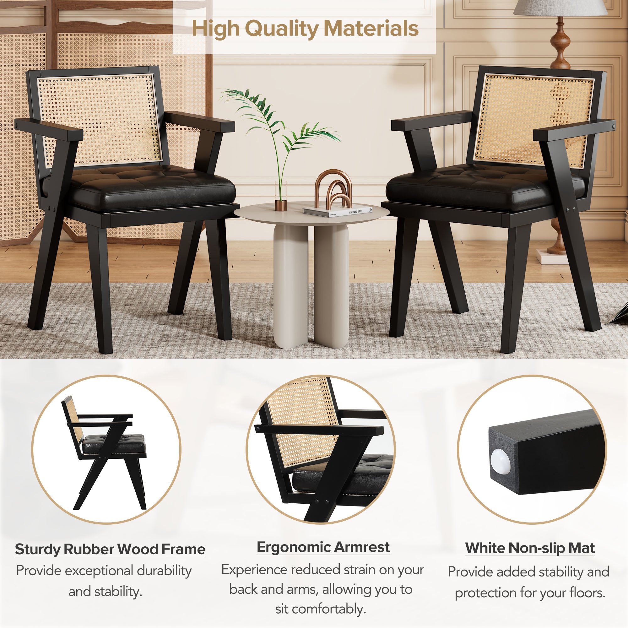 Mid-Century Accent Chair with Handcrafted Rattan Backrest and Padded Seat for Leisure, Bedroom, Kitchen, Living Room, Enterway, Black