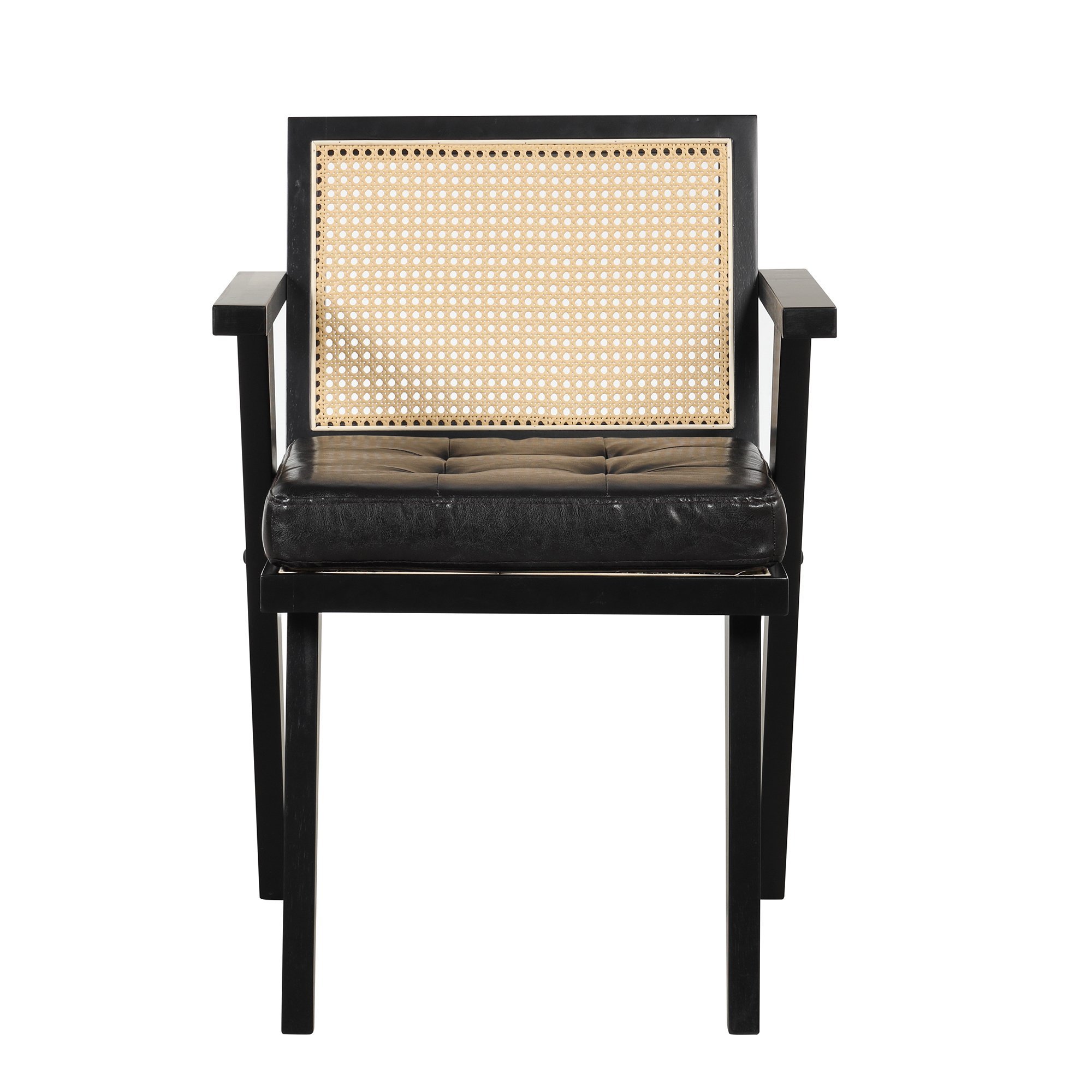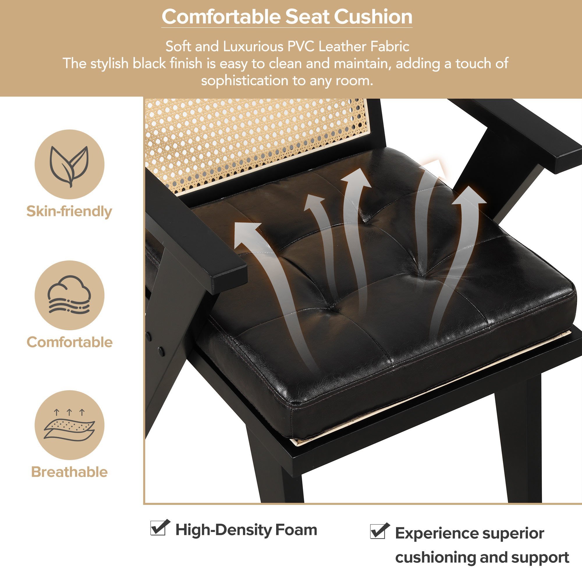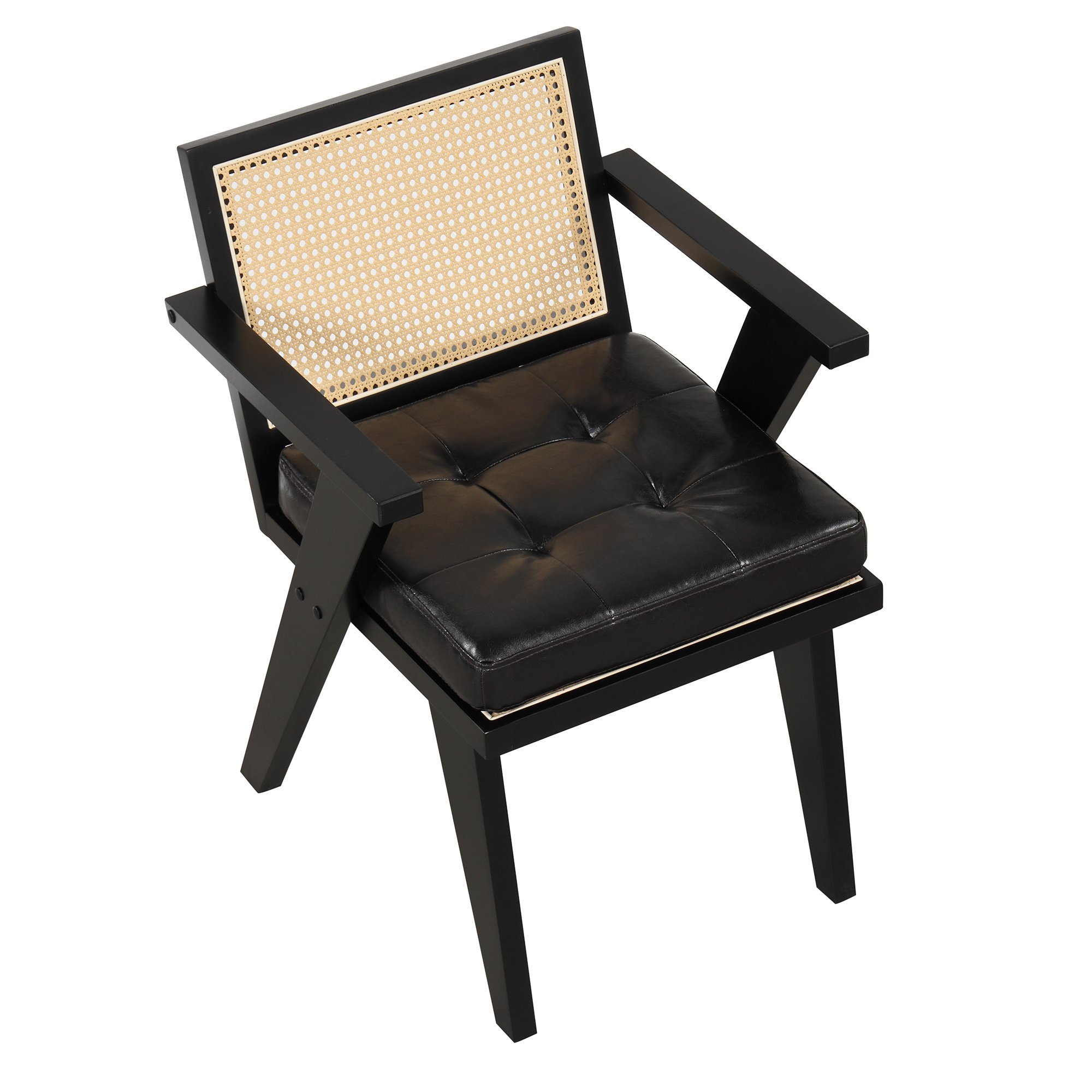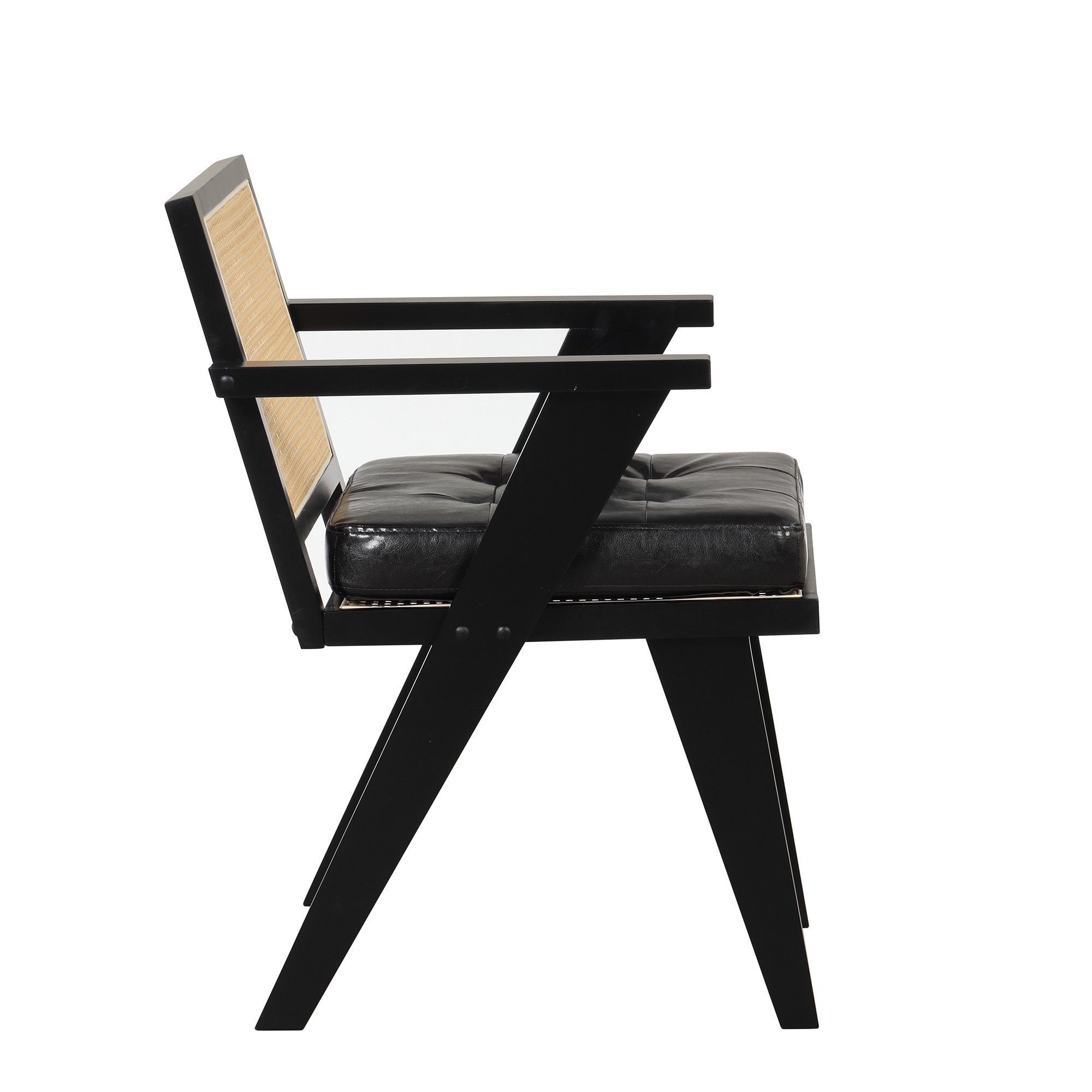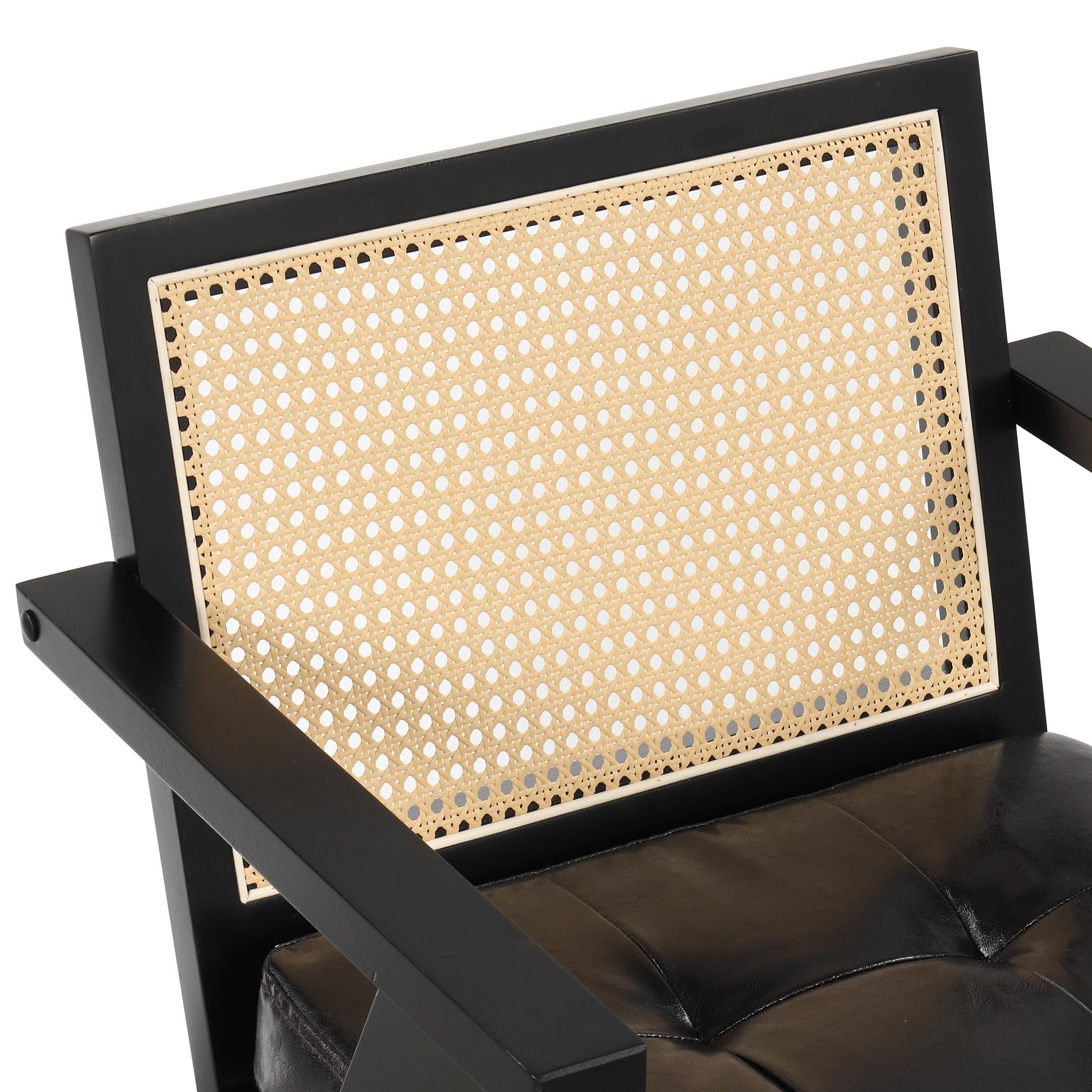 Home > Mid-Century Accent Chair with Handcrafted Rattan Backrest and Padded Seat for Leisure, Bedroom, Kitchen, Living Room, Enterway, Black