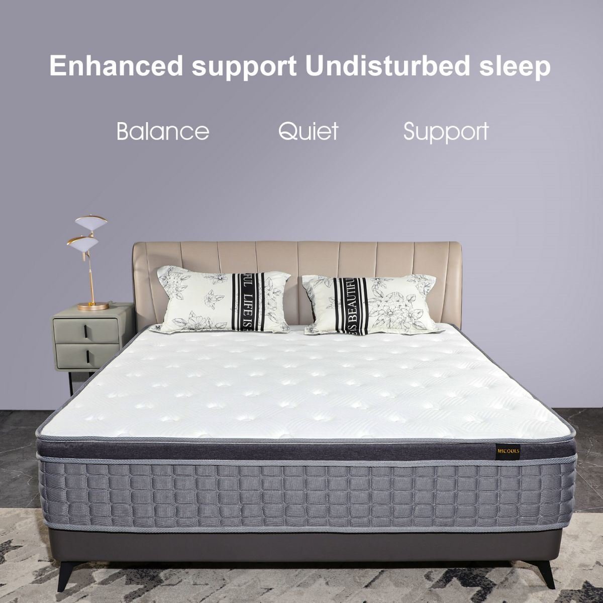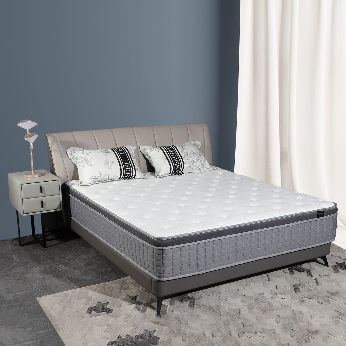 Unique 7-zone design provides both pressure-relief and supportThe upper foam layers adjust to the body to provide acustomizedand relaxing sleep surfacePremium memory foam with egg shape foamThe lower inner pocket-spring layer offers lasting supportContemporary Elegantwhite colour with graysidedesignBreathable wave foam pillow-top layer for maximum comfortReinforced corners; prevent edges collapsing