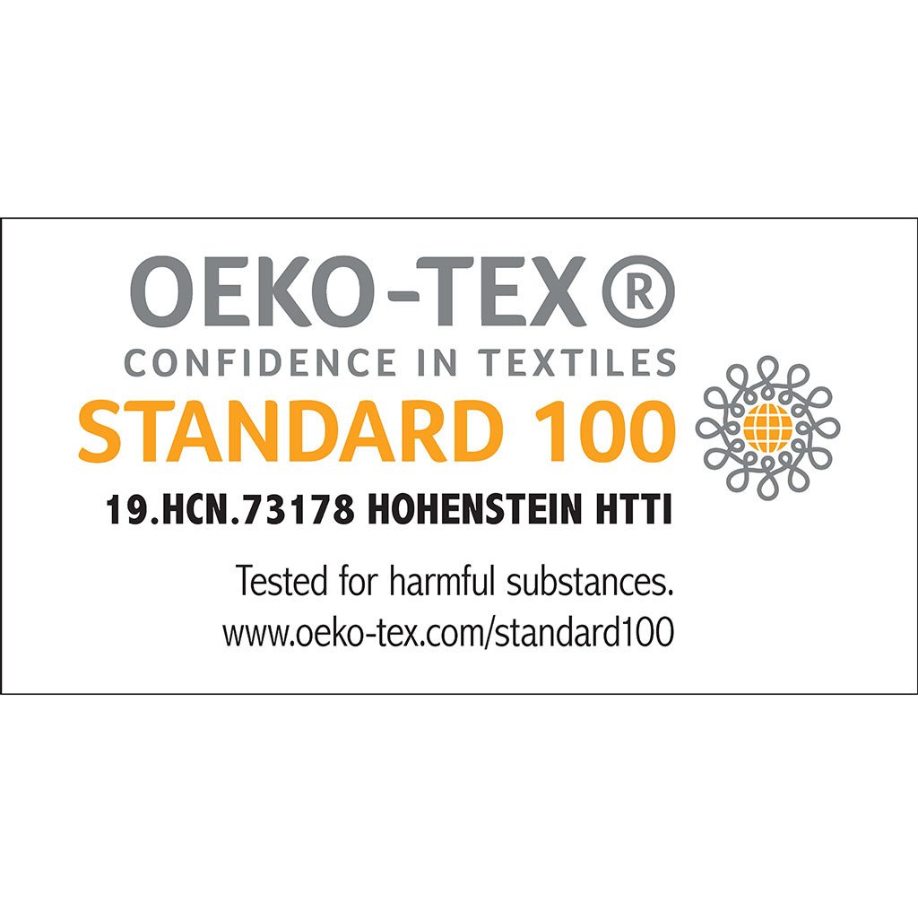 Oeko-Tex Certified, includes no harmful substances or chemicals