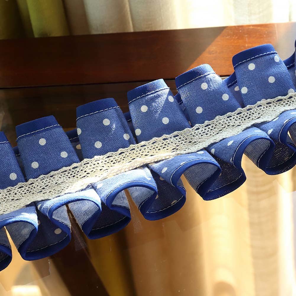 Home > 2 Pcs Rural Style Lace Curtain Tiebacks Pleated Cotton Curtain Decoration for Inside Outdoor Drapes, Blue