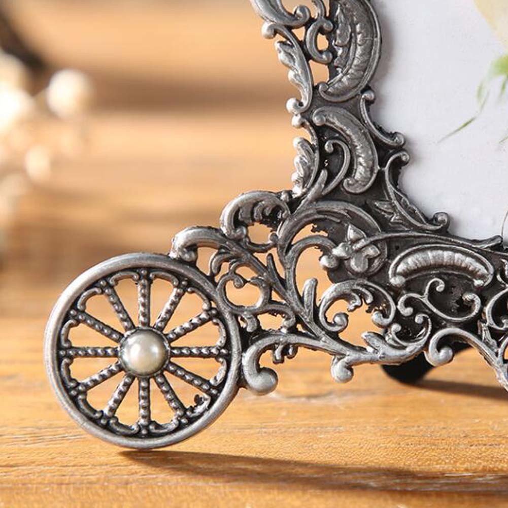 Home > Retro 3x3 Metal Photo Frame Antique Silver Carriage Baby Photo Frame Hollow Out Carved Picture Frame Gift Home Decor