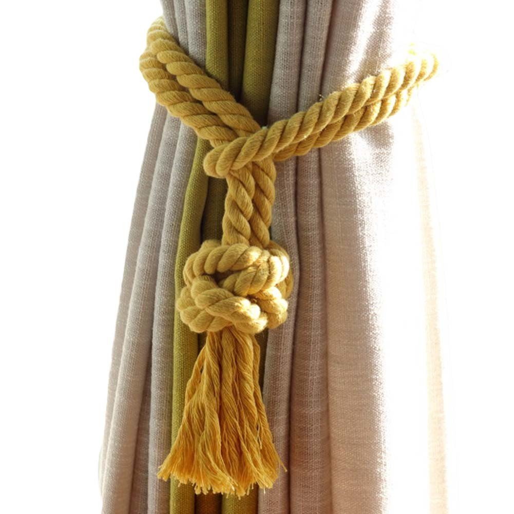 Home > 2Pcs Handmade Cotton Rope Curtain Holder Tie Backs Drapes Ball Tiebacks Holdbacks Tassel Home Decor, Yellow