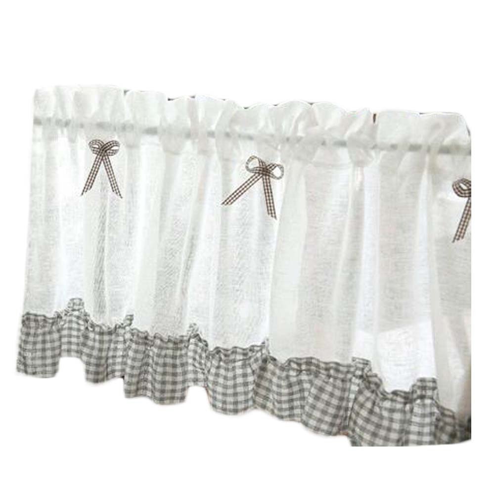 Semi Sheer Grey Grid Doorway Curtain Valance Half Curtain Bowknot Kitchen Short Curtain Tier cafe Curtain,59x15 inch Semi Sheer Grey Grid Doorway Curtain Valance Half Curtain Bowknot Kitchen Short Curtain Tier cafe Curtain,59x15 inch