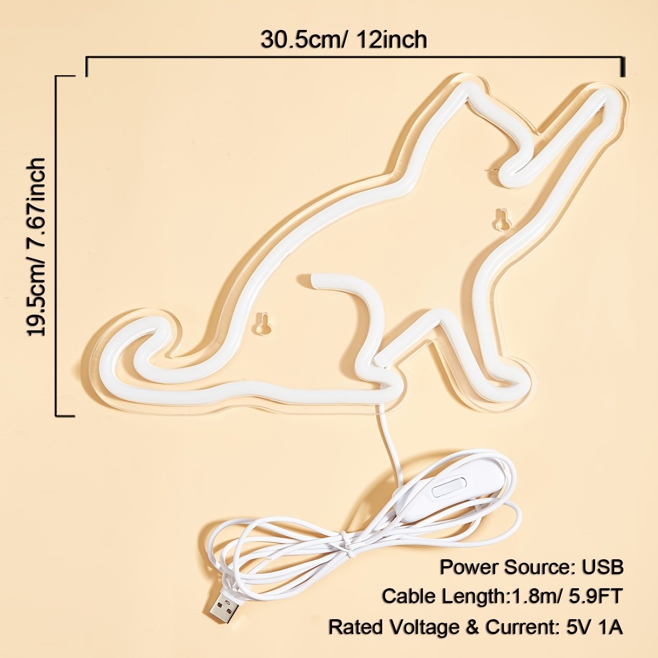 1pc LED Neon Sign Cat-shaped Night Lights, 5V USB Power Supply Neon Lamp With 2 Hooks For Home Bedroom Dorm Party