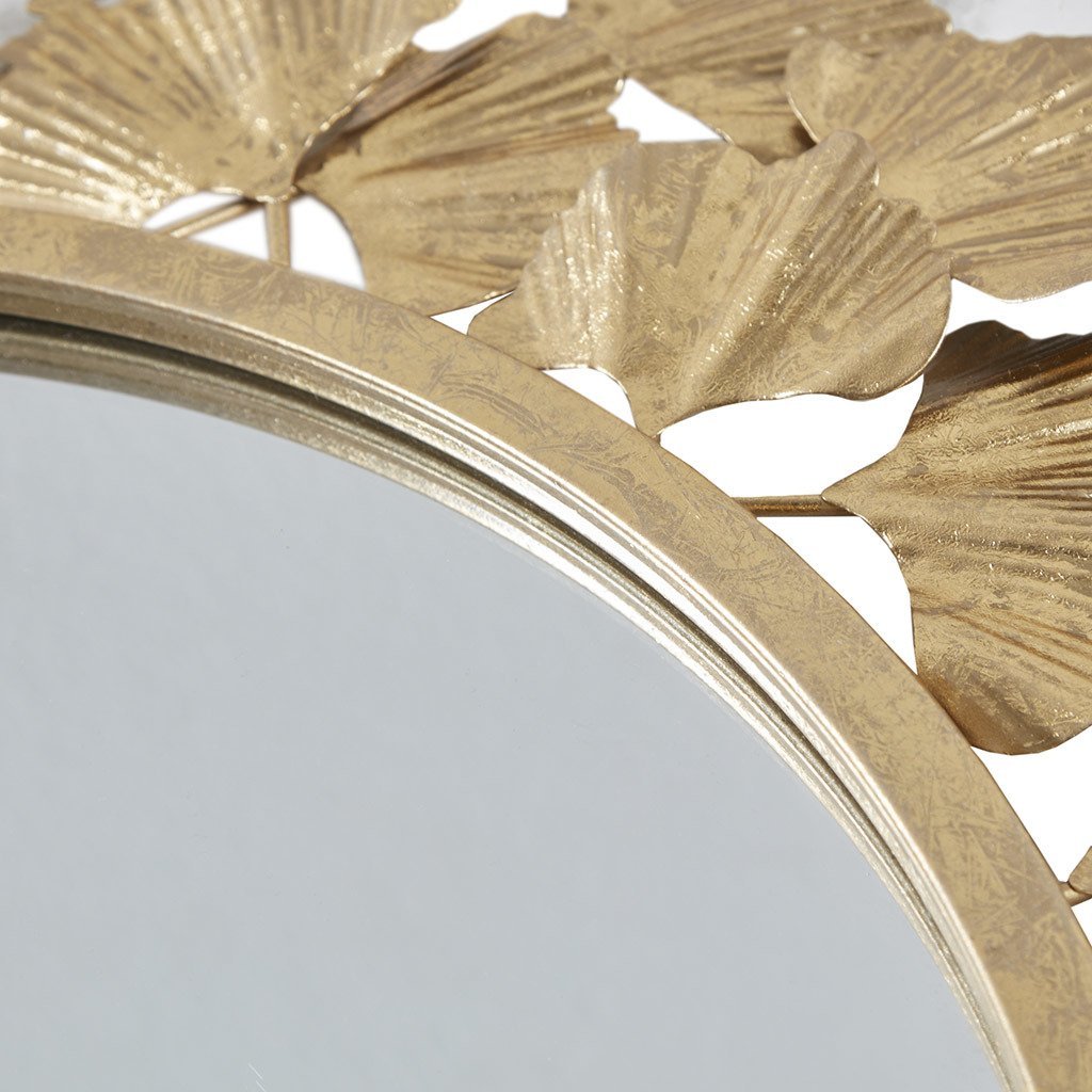 Home > Gold Gingko Leaf Round Wall Mirror 30.5"