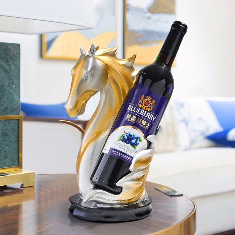 Home > NORTHEUINS Resin Horse Head Wine Rack Figurines Interior Bottle Holder Storage Ornaments Home Living Room Tabletop Decorations