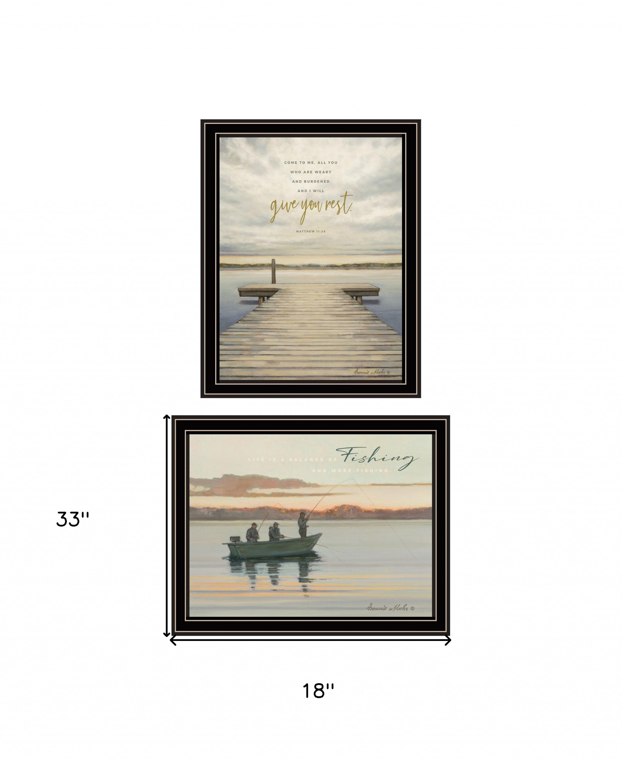 The set of two lake side reprieve 1 black framed print wall art is the perfect decorative accessory for your home. This print is a visual artistic expression that allows you to decorate your space in style. Reproduced for you on wood, this hanging decorative accent will be a trendy and fashionable way to dress your walls in a rustic and modern farmhouse vibe. Hang on your wall to add some up to date fashion and decoration. Utilize this opportunity to create a focal point in the room with this fabulous wall decor option. 33-inch H x 18-inch W x 1-inch D