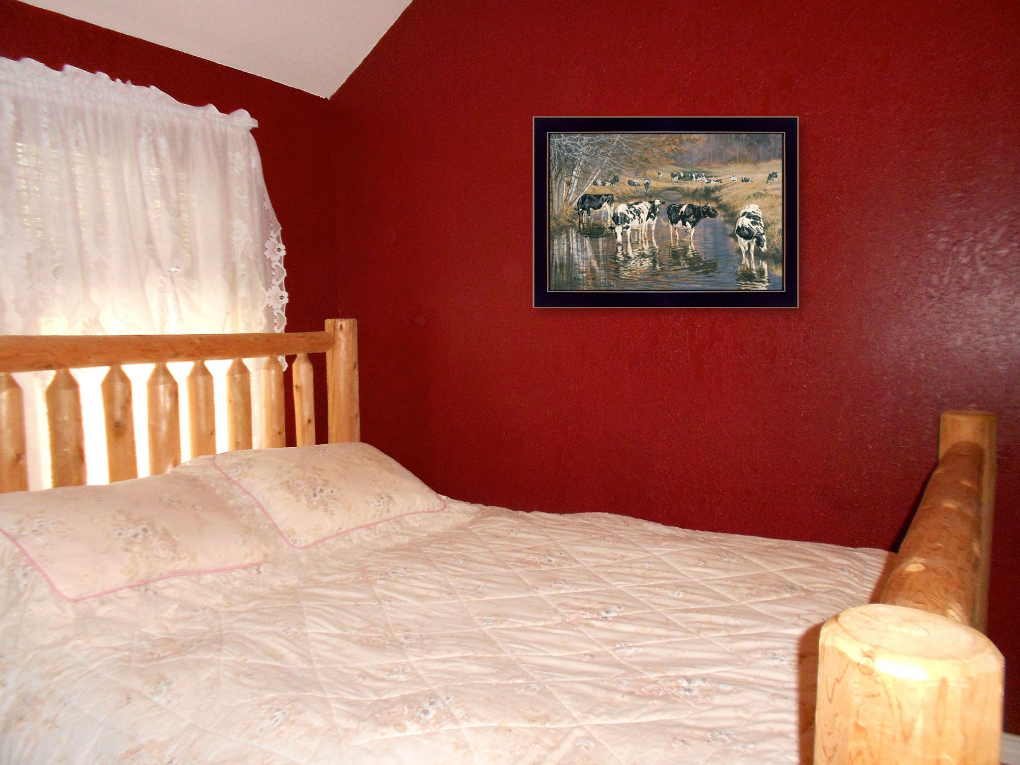 Add an air of fashion to your room and rejuvenate the space with this fall reflections holsteins in river black framed print wall art. Update your walls with this farm animal decor. This print is a visual artistic expression that allows you to decorate your space in style. Reproduced for you on paper, this hanging decorative accent will be a trendy and fashionable way to dress your walls. Hang on your wall to add some up to date fashion and decoration. Utilize this opportunity to create a focal point in the room with this fabulous wall decor option. 14-inch H x 20-inch W x 1-inch D