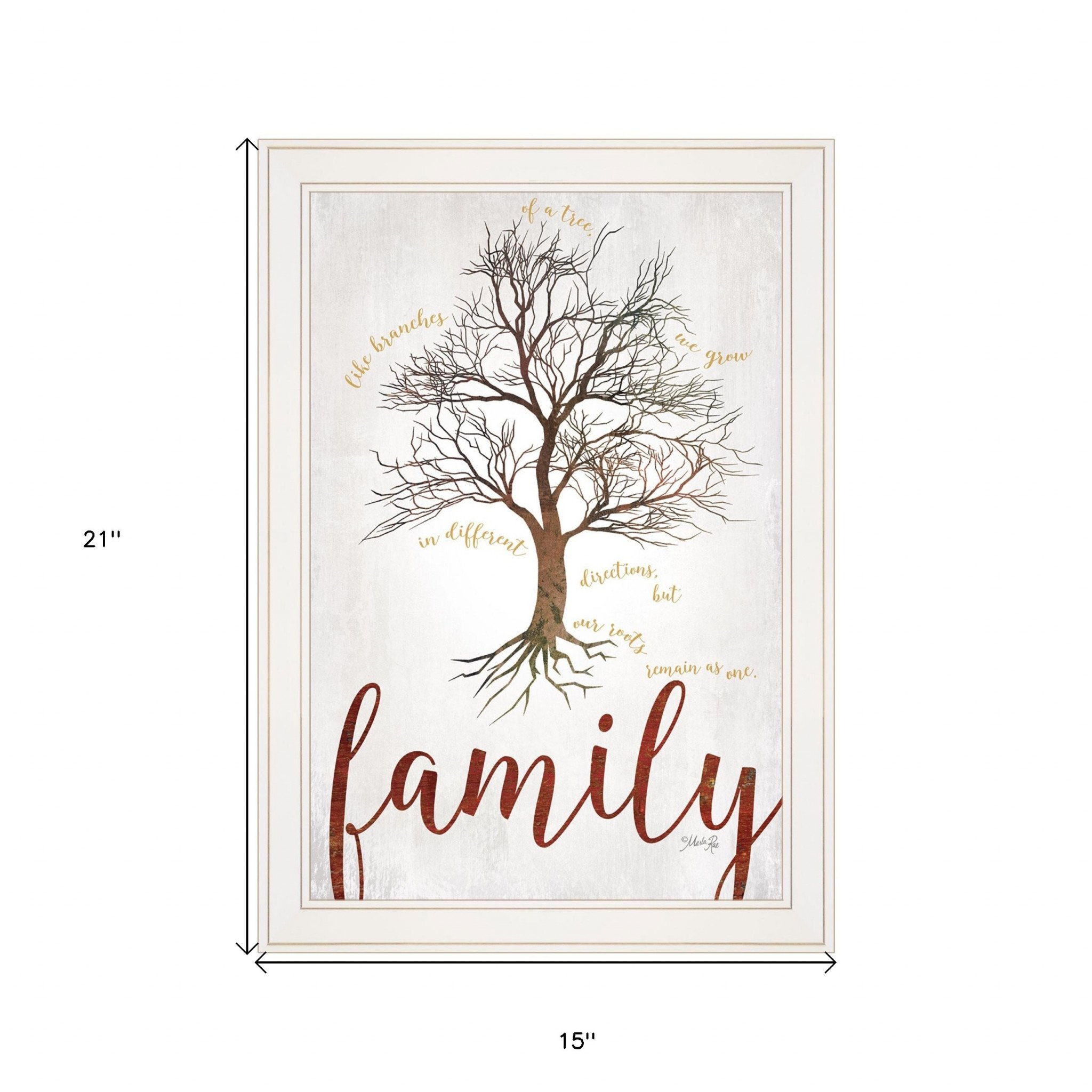 This family tree 1 white framed print wall art will add a beautiful decorative accent to your decor. This print is a visual artistic expression that allows you to decorate your space in style. Reproduced for you on paper, this hanging decorative accent will be a trendy and fashionable way to dress your walls. Adding this hanging wall art to your space to make your room feel more finished and attractive. Instantly liven up your space with this art that brings color and dimension to your walls. 21-inch H x 15-inch W x 1-inch D