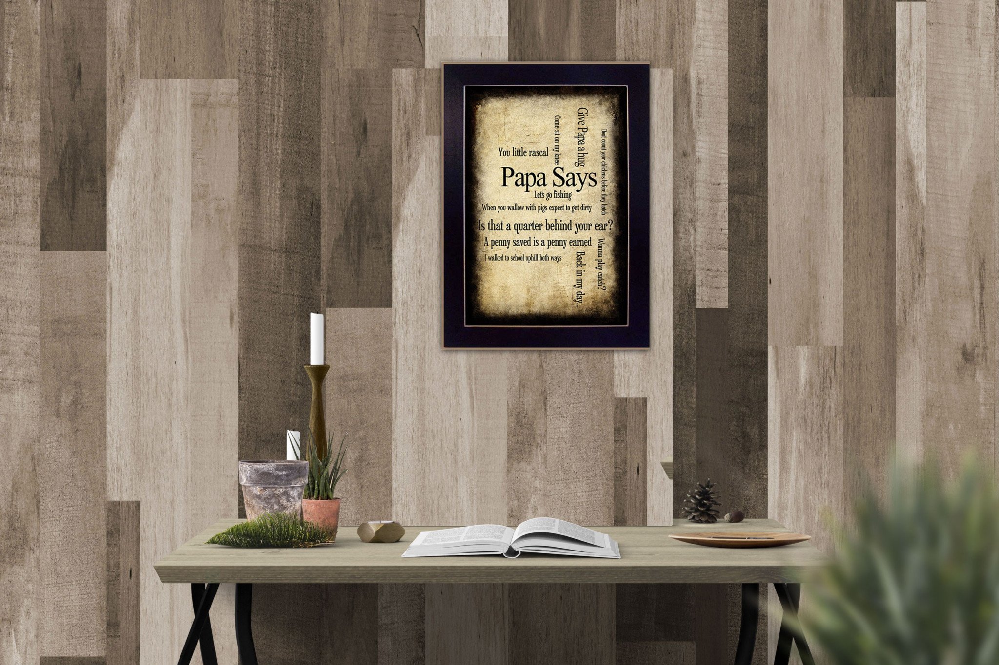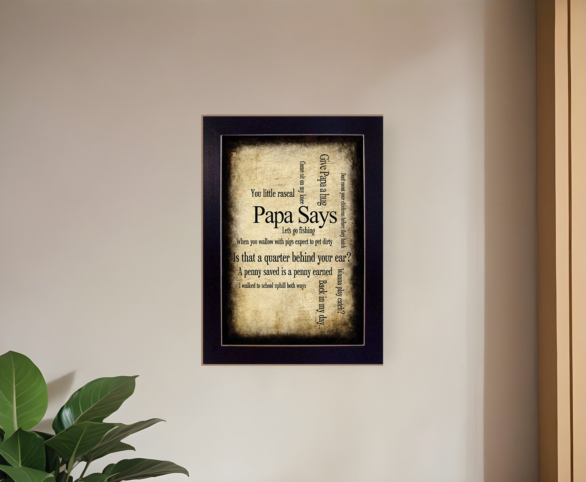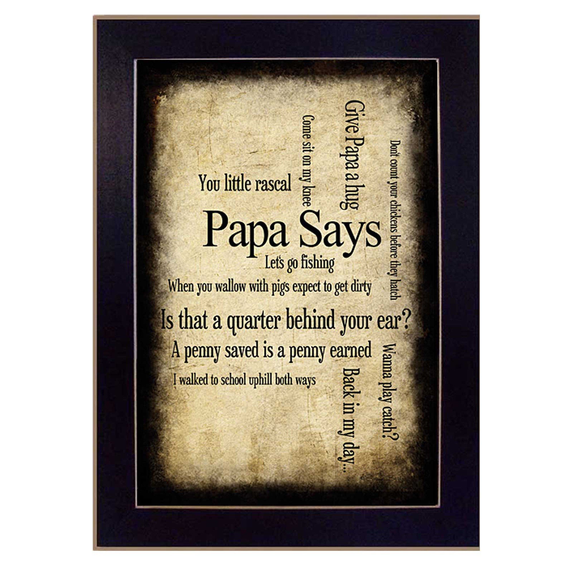 Bring some sizzle to your space with this eye-catching papa says black framed print wall art. This print is a visual artistic expression that allows you to decorate your space in style. Reproduced for you on paper, this hanging decorative accent will be a trendy and fashionable way to dress your walls. Hang on your wall to add some up to date fashion and decoration. Utilize this opportunity to create a focal point in the room with this fabulous wall decor option. 10-inch H x 14-inch W x 1-inch D