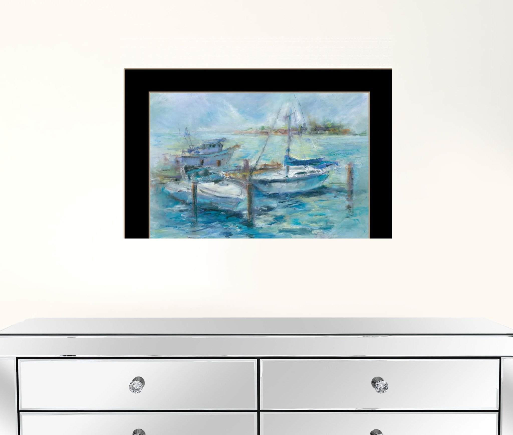 The dockside 1 black framed print wall art is the perfect decorative accessory for your home. This print is a visual artistic expression that allows you to decorate your space in style. Reproduced for you on paper, this hanging decorative accent will be a trendy and fashionable way to dress your walls. Hang on your wall to add some up to date fashion and decoration. Utilize this opportunity to create a focal point in the room with this fabulous wall decor option. 14-inch H x 18-inch W x 1-inch D