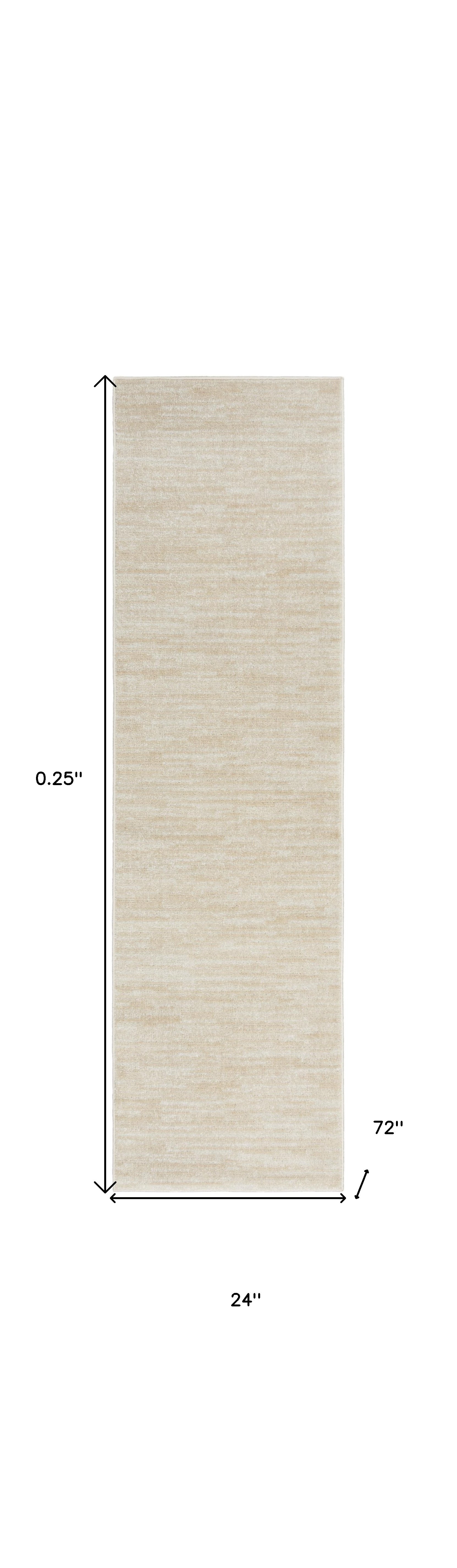 Add some artistry to your room with this 2' x 6' ivory and beige non skid indoor outdoor runner rug. This runner shaped rug flaunts a ivory and beige color that will be a great way to accent your space. Solid colors are versatile and will blend with any existing decor style. Made in Turkey, this rug offers high quality combined with good looking designer sensibilities. Place this area rug against a hardwood or tile floor and it will enliven your living space with style and sophistication. 0.25" H x 24" W x 72" D