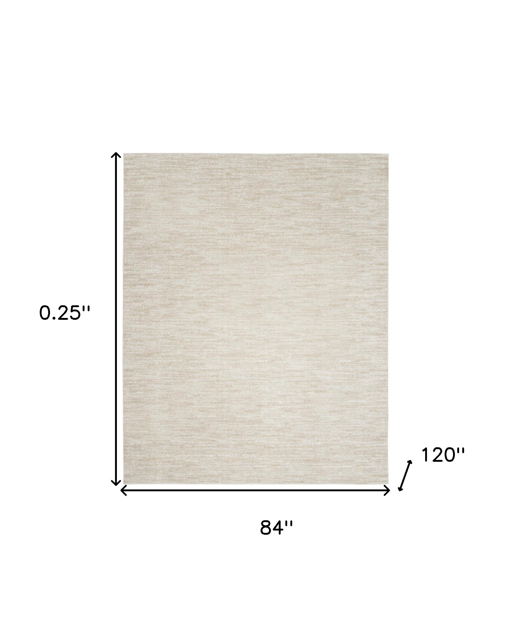 Set an inviting tone in your space with this 7' x 10' ivory and beige non skid indoor outdoor area rug. This rectangle shaped rug flaunts a ivory and beige color that will be a great way to accent your space. Solid colors are versatile and will blend with any existing decor style. Made in Turkey, this rug offers high quality combined with good looking designer sensibilities. Place this area rug against a hardwood or tile floor and it will enliven your living space with style and sophistication. 0.25" H x 84" W x 120" D