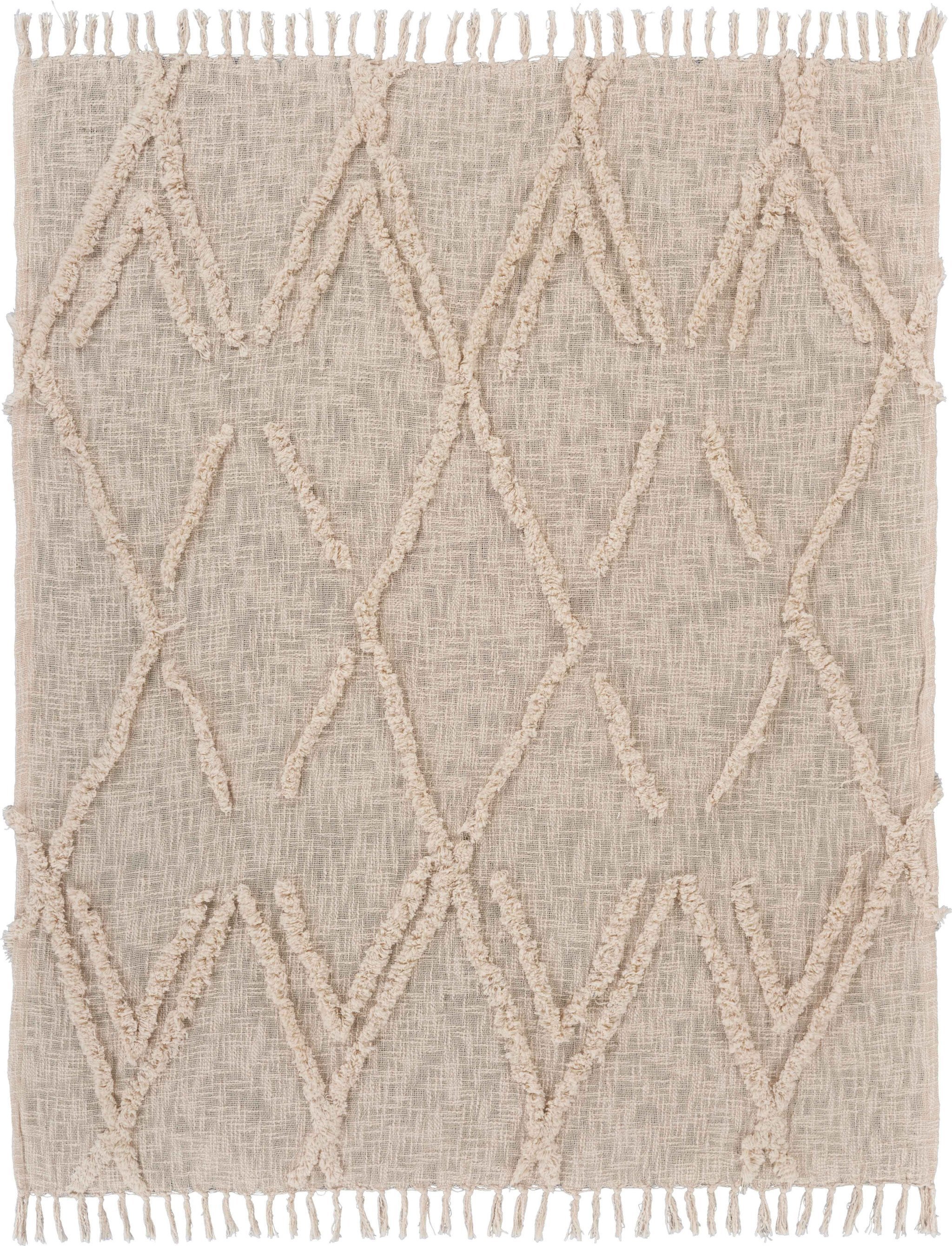 Home > 60" X 50" Beige Woven Cotton Geometric Throw Blanket with Fringe