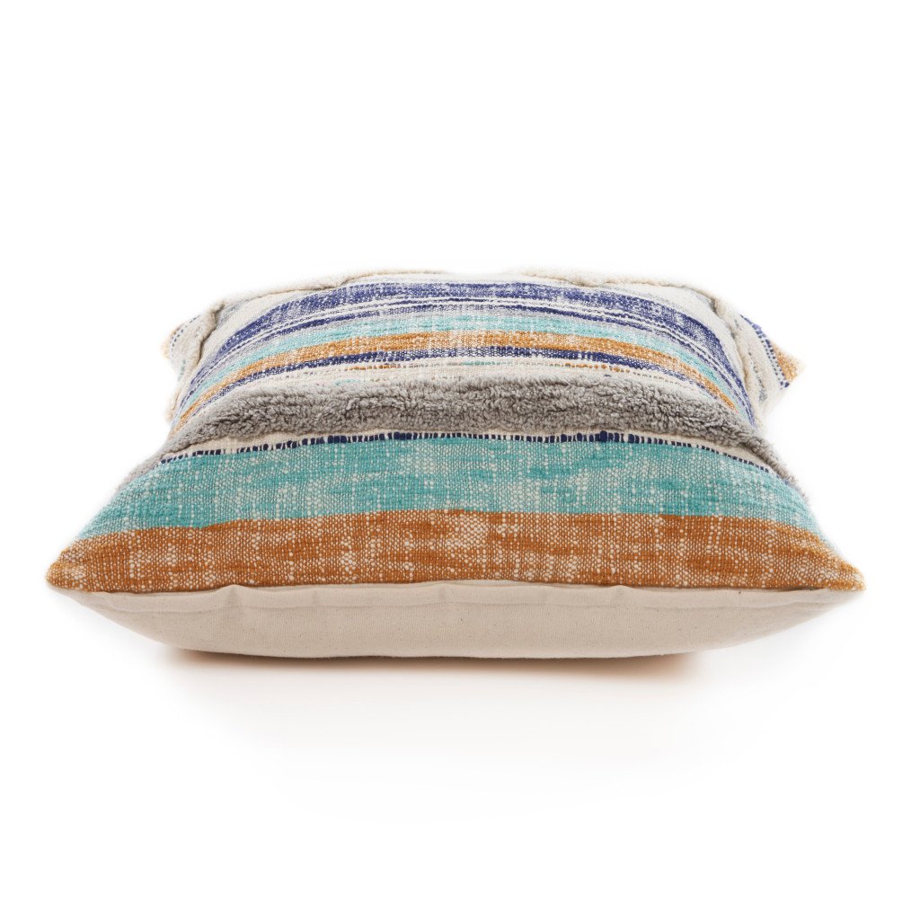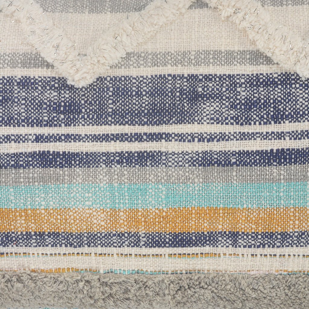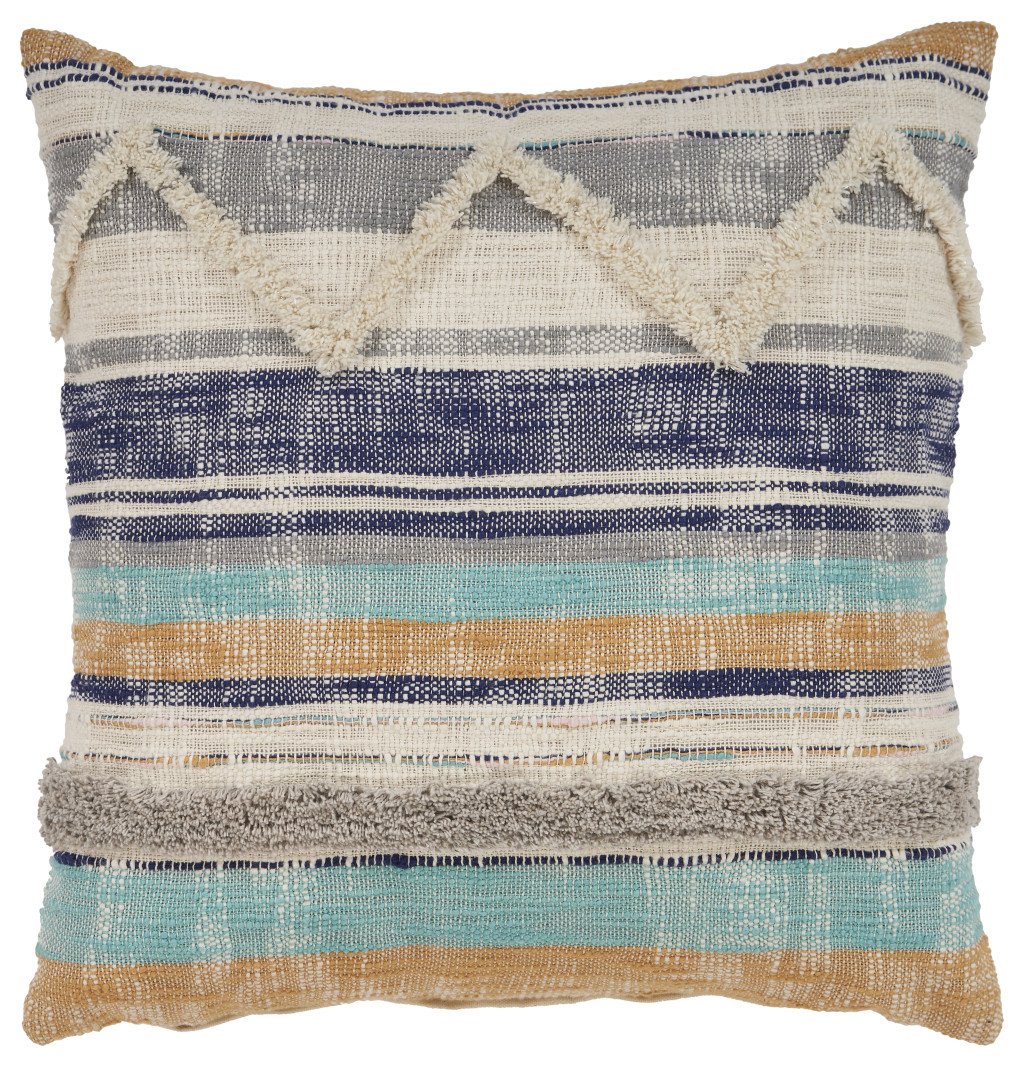 The 18-inch x 18-inch beige blue and gray geometric cotton zippered pillow is the perfect decorative accessory for your home. This beige blue and gray hued piece represents quality construction, expertly made from premium 100% cotton that is not only long lasting but super soft to the touch as well. This soft polyfill pillow not only is decorative but made to be comfy and cozy all day long. Decorative throw pillows not only add color and dimension to your space but can be comfy and supportive when you are lounging and cuddling as well. A great decorative accessory for your favorite chair, to accent your sofa, or to use as part of your bed ensemble. 18-inch H x 18-inch W x 6-inch D