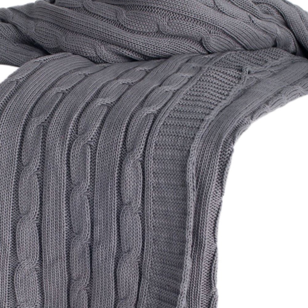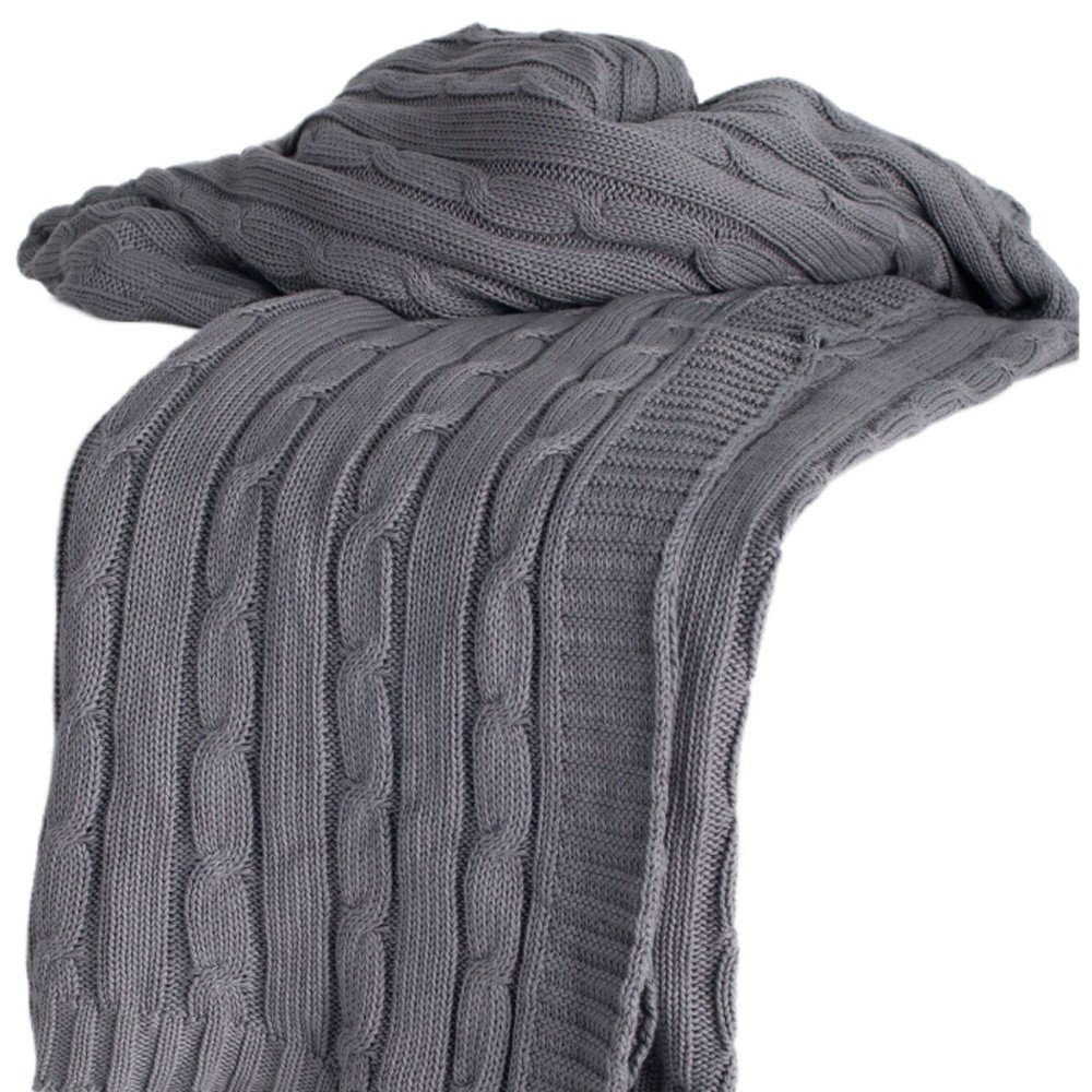 Light Gray Knitted 100% Cotton Throw Blanket