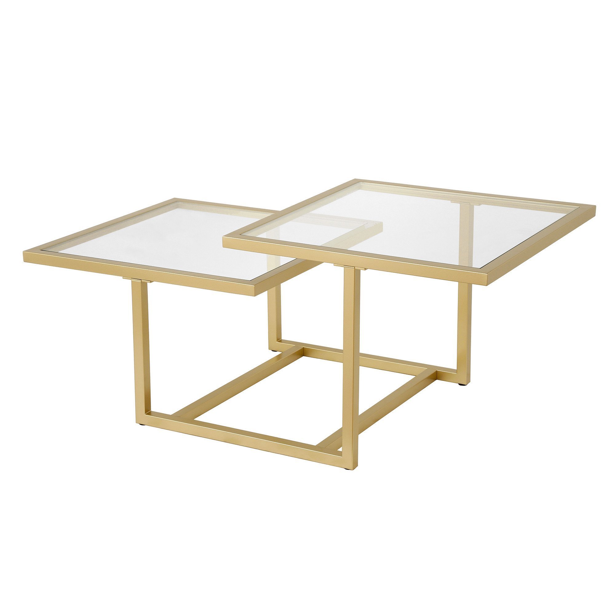 Give your living room, family room, or office the perfect anchor piece with this 43-inch gold glass and steel square coffee table with two shelves. This table features an updated monotone color scheme with gold as the main color on both the glass top and the steel base. Includes 2 shelves for additional storage or display space. This square table features a fresh and stylish shape to give your room a visually pleasing accent. If you're looking for something that can fit into a living area, bedroom, or office, this coffee table is for you. This coffee table is the sturdy, reliable and stylish answer to your living room needs. 18-inch H x 43-inch W x 23-inch D