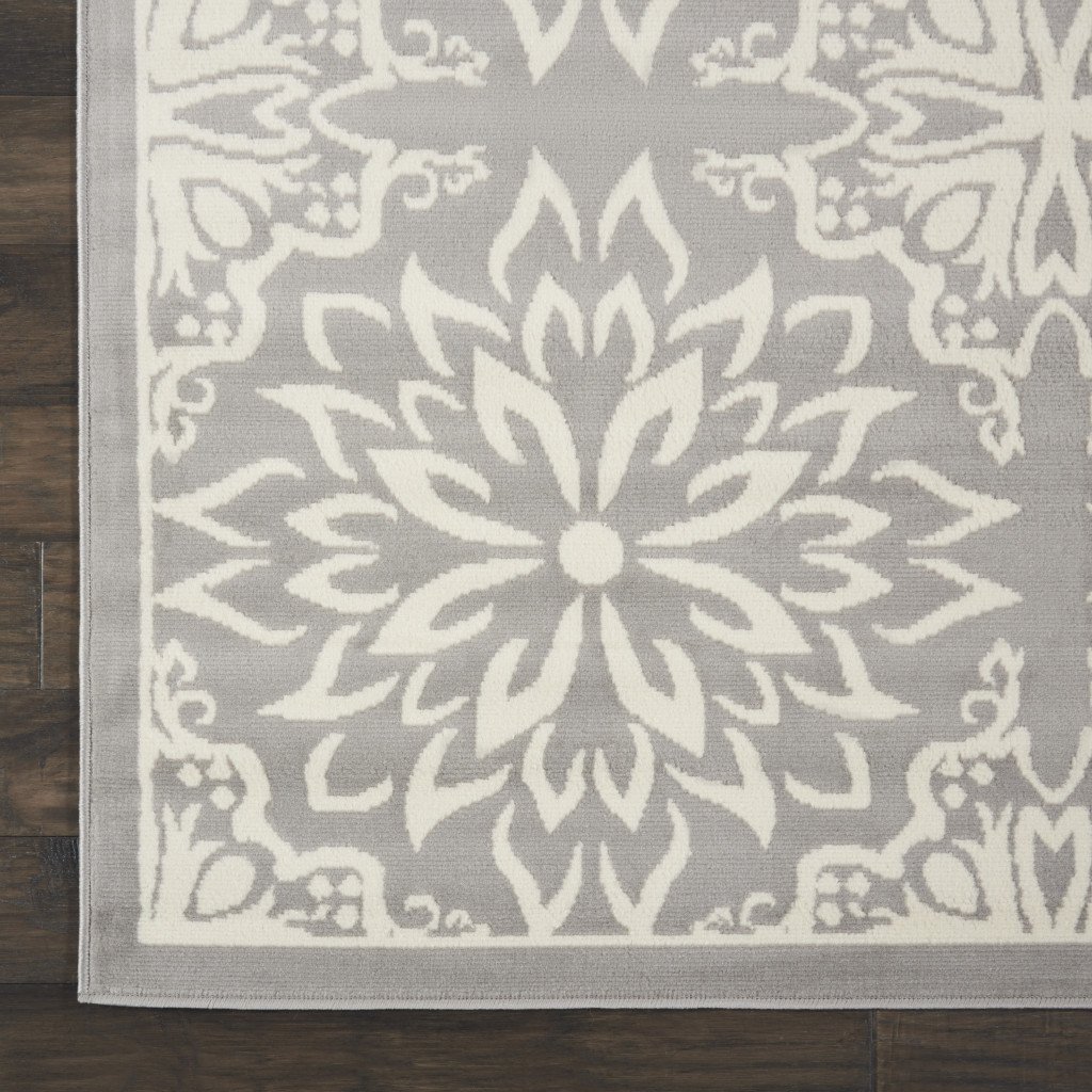 7' X 10' Gray Floral Power Loom Area Rug