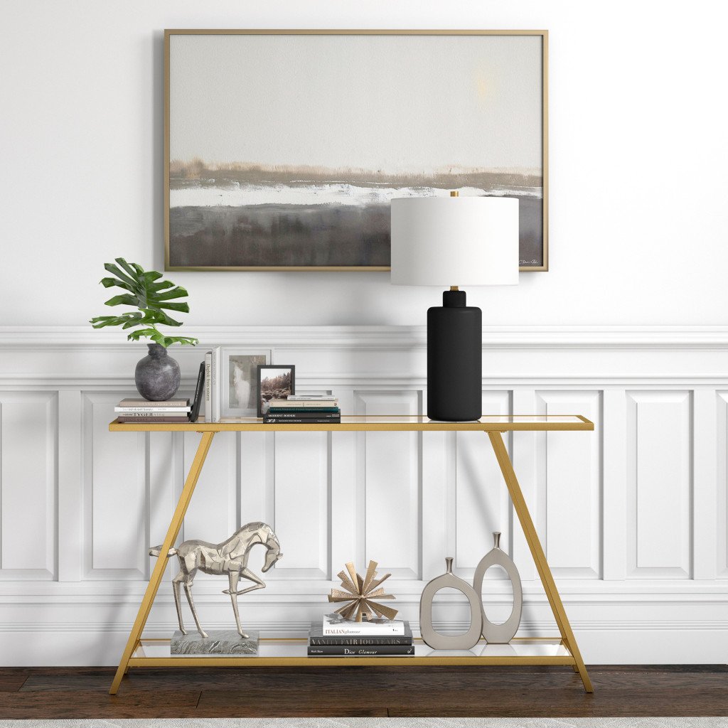 Add a bright anchor to your room with this 25-inch black ceramic table lamp with white drum shade. The base of this lamp is made of black ceramic. The white drum fabric shade is finishes this piece off nicely and symmetrically this standard table lamp is designed to provide general lighting to the area. High quality design makes this a great lamp for not only lighting, but accenting a room with style. The perfect lamp to create just the right natural and soothing light in your space. 25-inch H x 14-inch W x 14-inch D