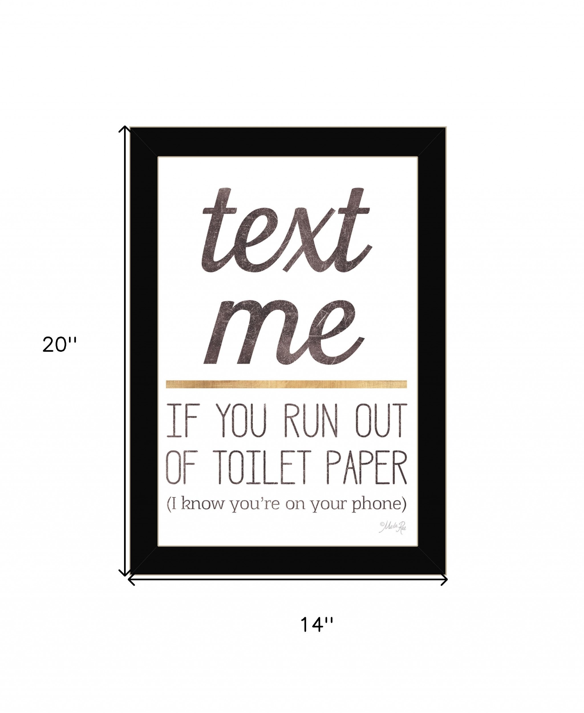 Add an air of fashion to your room and rejuvenate the space with this text me if you run out of toilet paper 1 black framed print wall art. This print is a visual artistic expression that allows you to decorate your space in style. Reproduced for you on wood, this hanging decorative accent will be a trendy and fashionable way to dress your walls in a rustic and modern farmhouse vibe. Adding this hanging wall art to your space to make your room feel more finished and attractive. Instantly liven up your space with this art that brings color and dimension to your walls. 20-inch H x 14-inch W x 1-inch D