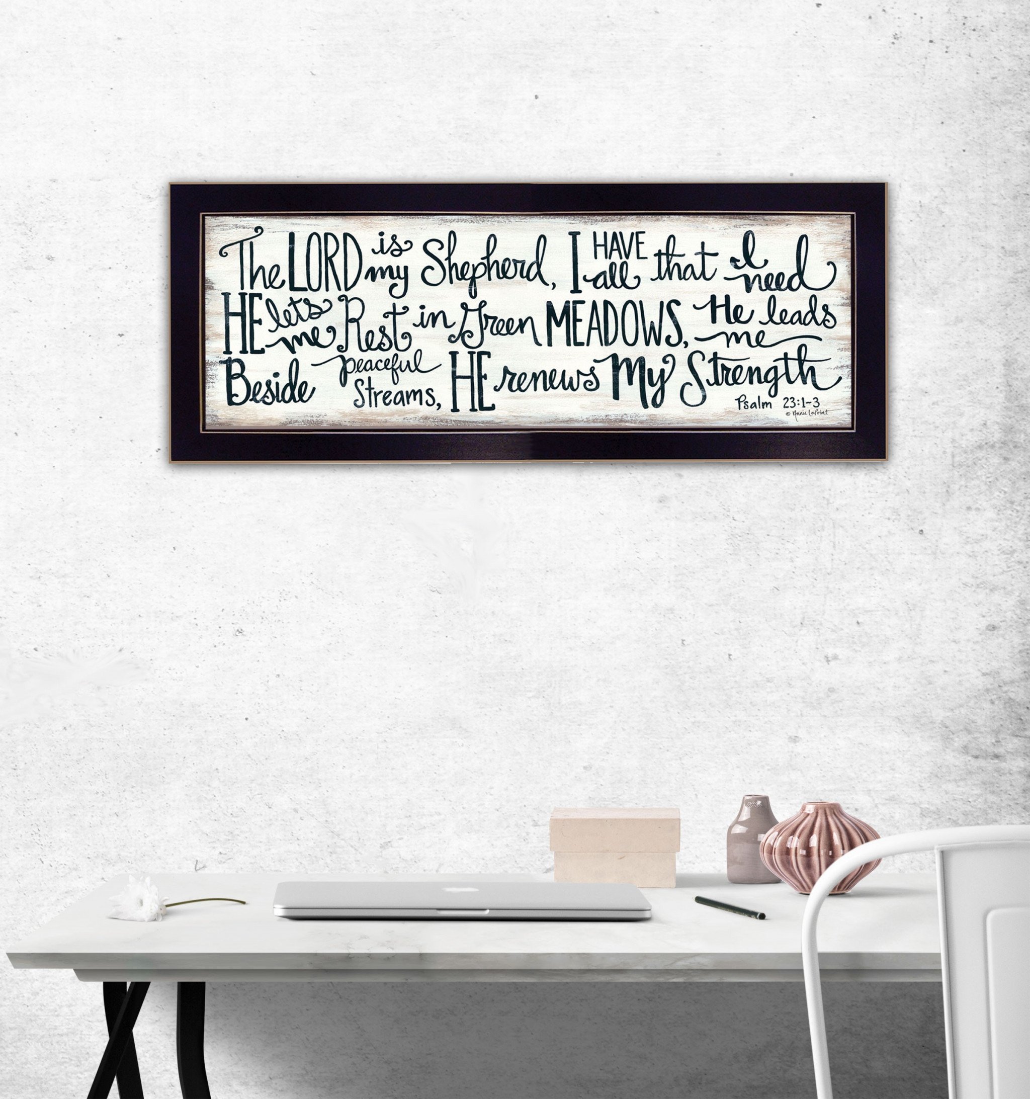 Unique and decorative, this the lord is my shepherd 1 black framed print wall art will leave a lasting impression. This print is a visual artistic expression that allows you to decorate your space in style. Reproduced for you on paper, this hanging decorative accent will be a trendy and fashionable way to dress your walls. Adding this hanging wall art to your space to make your room feel more finished and attractive. Instantly liven up your space with this art that brings color and dimension to your walls. 8-inch H x 20-inch W x 1-inch D